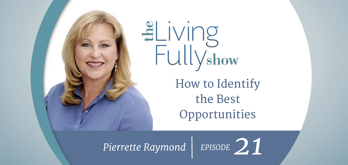 In this episode, on the heels of a five-day writing retreat in the Canadian Rockies, Pierrette shares what she now does as her process, a six-question assessment, when she is faced with opportunity that could potential take her vision and mission to a whole new level. How do you weigh a good opportunity against a bad one? She has learned through many bad mistakes what is right for her, and what is not, and she shares the process she uses to walk you through an opportunity which can then help you to decide if it’s a good investment, a good fit, or not.